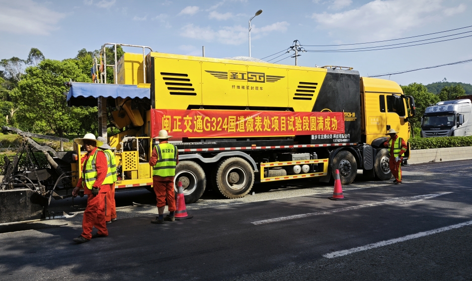 加粘纖維微表處是一種同時進行粘層油噴灑和纖維微表處施工的一種施工工藝。